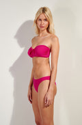 RÉSERVER EN BOUTIQUELe haut de maillot bandeau BAHIU s’inspire de la coupe bustier. Le nœud à l'entre-seins s’ajuste au décolleté pour mieux le sublimer. Les bonnets froncés et les baleines sur les côtés assurent un maintien parfait. Framboise, un rose incandescent et délicieusement sucré.