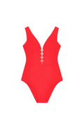 RÉSERVER EN BOUTIQUEBONNIE réinvente le maillot de bain une pièce nageur en lui donnant un nouvel élan chic très féminin. Résolument élégant, ce modèle est agrémenté d'un lien supplémentaire pour remplacer les bijoux boutons de manchettes. Son échancrure en pointe dans le dos et la couture soulignant la taille lui apportent une touche de raffinement et d’originalité. Groseille, un rouge vif, gorgé de soleil.