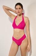 RÉSERVER EN BOUTIQUELe bas de maillot tanga COURA épouse la silhouette avec distinction. La large bande de matière bonded souligne la taille. Dans le dos, la coupe échancrée en pointe sublime les courbes tout en finesse. Framboise, un rose incandescent et délicieusement sucré.