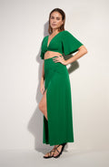 Avec sa large ceinture, la jupe portefeuille fluide JUDIE souligne élégamment la taille. Pour une silhouette plus libre, cette longue jupe fendue se porte aussi taille basse. Jade, un vert prononcé intensément doux et lumineux.