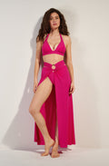 RÉSERVER EN BOUTIQUEAgrémentée d’un anneau bijou, la jupe paréo PETRA change de style avec élégance. Version jupe, ses lanières s’attachent joliment autour de la taille. Elles se nouent autour des épaules pour une robe de plage bustier à l’allure très féminine. Framboise, un rose incandescent et délicieusement sucré.